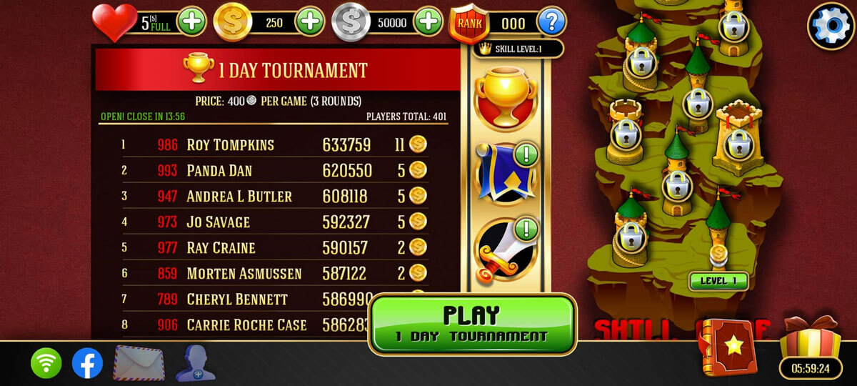 Play through hundreds of challenging levels or compete in tournaments.