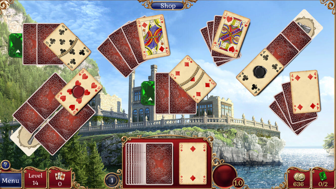 Rebuild the castle by crushing each and every Solitaire level you encounter.