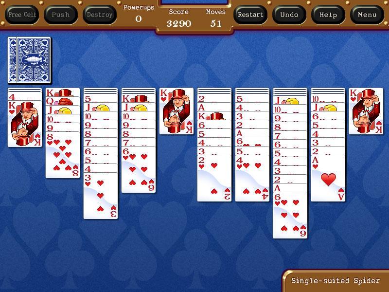 Take advantage of the power-ups available to you when trying to remove all the cards in the deck.